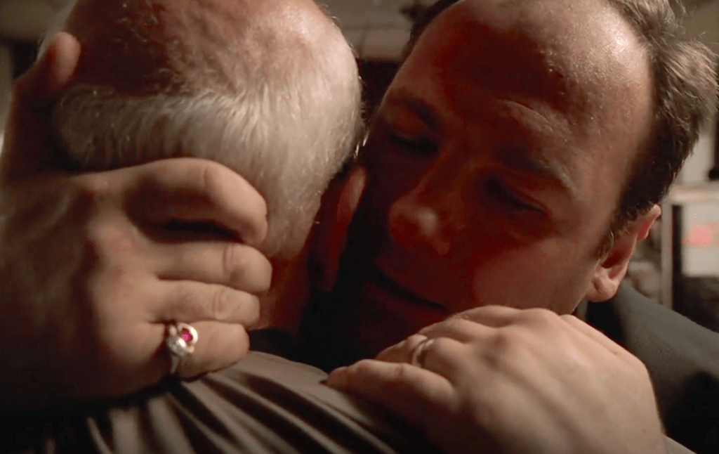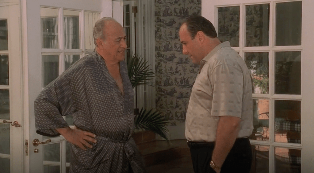 As for the more iconic moments, I think this truce gets swept under the rug. Through all Tony’s faults, he’s not the most egotistical mafioso (think Phil Leotardo, Johnny Sack, or even Junior). Usurping Junior has little to do with pride, and everything to do with the good of the family (and of course, Tony’s wallet). Tony shares the same understanding as everyone else – that he’d be a solid boss, while Junior will just give everyone agita. Considering everyone’s best interest, one could even classify this scheme as selfless and honorable! This, of course, is all thanks to Melfi, who gives Tony sound advice: smoothen the tension with Livia by giving her the illusion of control. Melfi, inadvertently, gives Tony his all time greatest business idea: trick Junior into thinking he’s running things. Immediately after learning of Jackie Aprile’s passing, Tony drives to Junior’s diner, and parks in the middle of the street, emphasizing that it’s 1999 and the Mafia’s in charge. As Tony sits, he professes “Sopranos have been waiting a long time to take the reigns”- a powerful reminder that Tony, Junior, and Johnny Boy have been the core of this crime family for decades. Once Tony delivers the good news, Chase includes one of his best Godfather odes as Tony embraces his uncle and whispers his “asking price” in his ear, an epic parallel to Michael and Fredo Corleone. And, well here’s the difference between Michael Corleone and Junior Soprano: Michael swiftly kills his traitor, while Junior completely fumbles the mission. The scene is exceptionally special when considering that from this point onward, it’s all downhill for Junior.