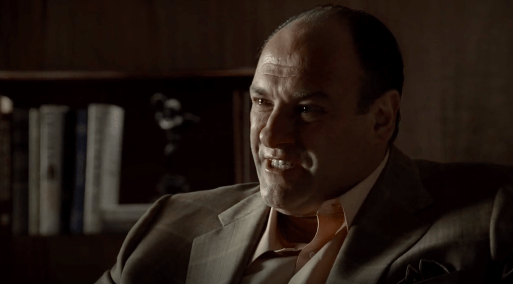 Hesh mentions a neurological study that examines how the human brain responds to fear, and details an example of someone hearing a tape of a parent criticizing them. Unfortunately for Tony, he has a far more extreme and traumatic experience listening to his mother on tape. Triggered by Hesh’s anecdote, the camera cuts to Tony as anxiety floods his face – he nods ever so slightly, blinks, winces, and sits up. It appears as though Tony dodges a panic attack right then and there. Then, Hesh starts talking about himself, and Tony refuses to listen. Without fail, when forced to listen to other people’s problems, Tony checks out (Carmela, Meadow, Gloria, Hesh, Eugene, Christopher, Janice). Speaking of Janice, it is fucking hilarious that Tony states “she is totally unimportant to me.” Gandolfini masterfully executes this scene.