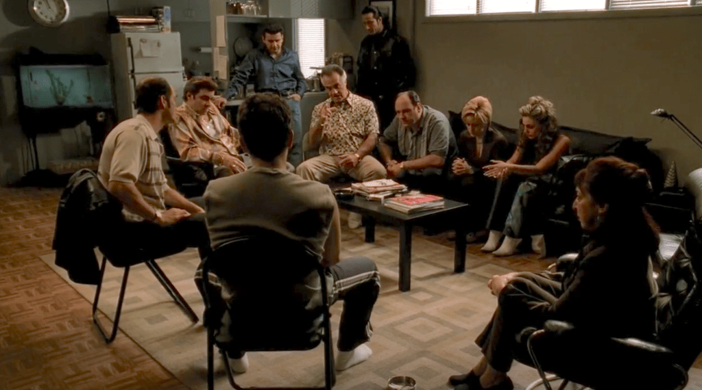 Christopher’s addiction is central to the arc that makes him one of the best fictional characters of all time. But, I’ll save those analyses for other scene write-ups, and limit this one to the intervention’s highlight reel.