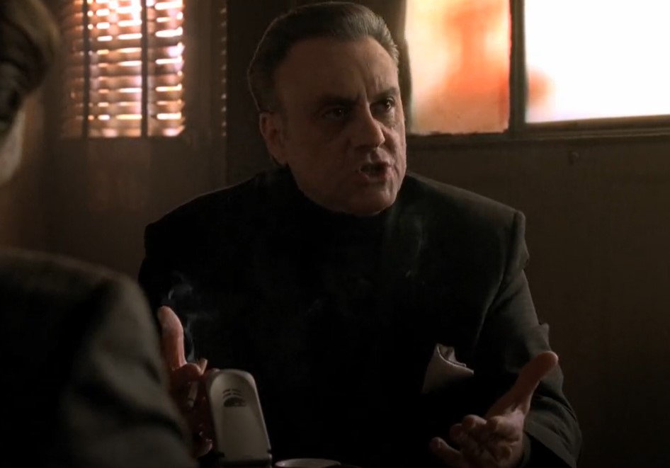 In light of Ralph’s joke, New Jersey, New York, and the Esplanade are forced into a stalemate. Junior phones into a sit down between Carmine, John, Tony, and Sil to offer his senior insight. Just like Carmine earlier in the episode, Ralph’s joke confuses Junior. This, complemented with Carmine and Junior’s unfamiliarity with cell phones, makes for quite the comedic spectacle. As the sit down progresses, John’s leverage weakens when he refuses to admit who relayed the joke to him. By not voicing this agreement, Junior demonstrates loyalty to Tony. He waits until he and Tony are in private and remarks “real lack of standards, your generation,” and reminds Tony that John was right to say “if this were years ago would I even have had to ask?” Carmine’s insistence on prioritizing money over Ginny’s “honor,” coupled with John and Junior’s point on how this issue would’ve played out back in the day, speaks volumes to the evolution of La Cosa Nostra’s rulebook, and perhaps society’s as a whole. This, of course, is tied together by John’s “I mean what happened to this thing?! For God’s sake, we bend more rules than the Catholic Church!” Junior smirks in agreement.